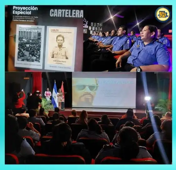 La sub comisionada Lesbia Trejos Carranza, Jefa de la Oficina de Formación Política e Ideológica Sandinista, destacó que la para Policía Nacional, “es un orgullo estar presente en una proyección como ésta, porque transmite a las generaciones de todos los tiempos, la vida y el legado del Comandante Carlos”.
