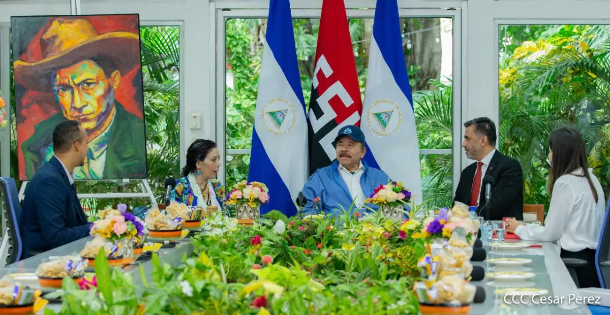 El Presidente Daniel Ortega y la Vicepresidente Rosario Murillo sostuvieron un encuentro con el compañero Sacha Llorenti, Secretario Ejecutivo del Alba-TCP, quien por una semana permaneció de visita en Nicaragua.