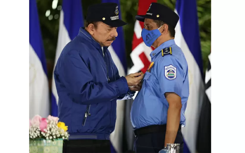 “Quería agradecerle comandante Daniel Ortega Saavedra, presidente de la República y jefe supremo, a nuestra compañera vicepresidenta de la República, Rosario Murillo Zambrana, agradecerle de parte de nuestras heroínas y héroes de la paz y de la seguridad. Agradecerle de parte de los y las policías y que recibimos esta orden con humildad”, expresó el primer comisionado general, Francisco Díaz.