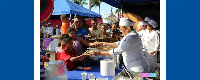 Centenares de familias abarrotaron el Puerto Salvador Allende para degustar y saborear la riquísima comida nicaragüense que prepararon los jóvenes técnicos profesionales, que participaron en la Feria Gastronómica “Nicaragua Mía” en saludo a la Fiestas Patrias.