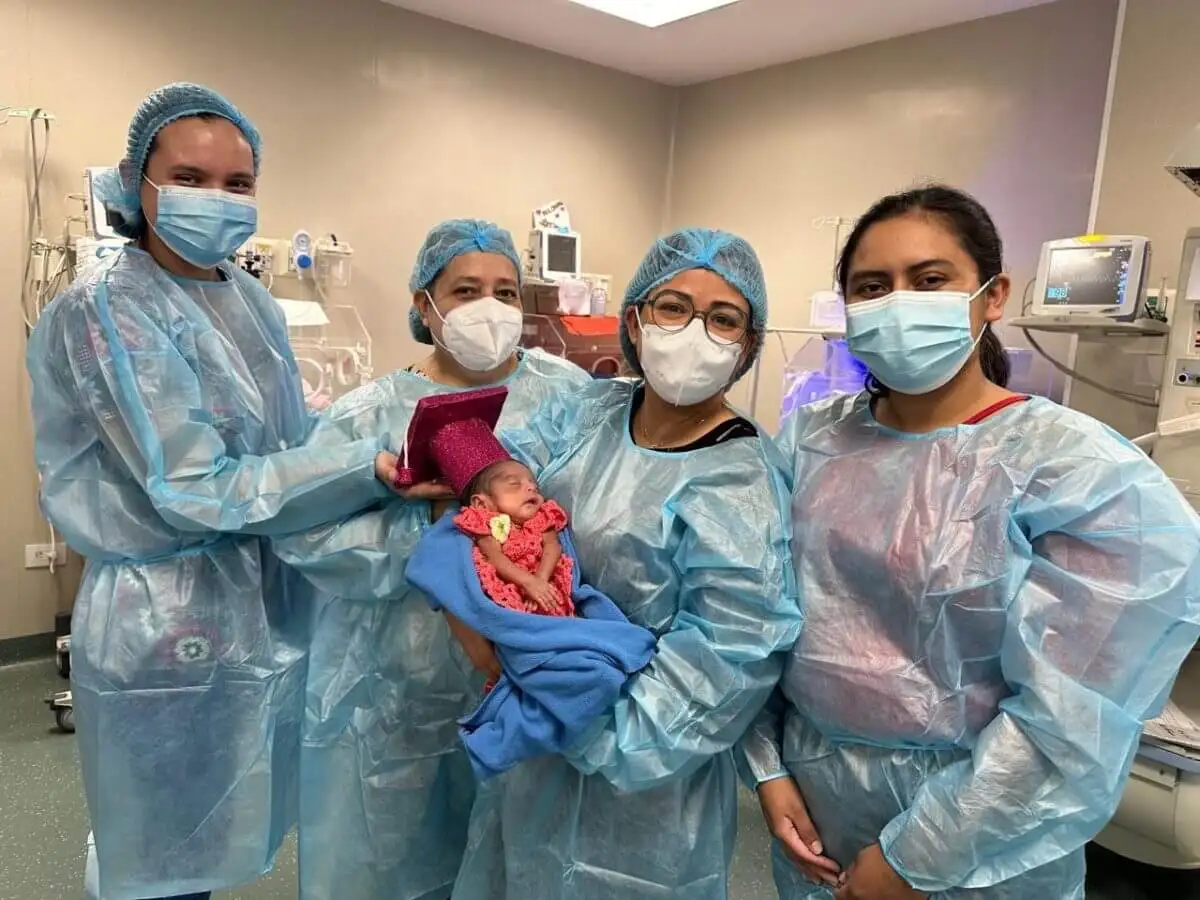 Nohelia tenía un embarazo de alto riesgo obstétrico, por presentar diabetes gestacional y restricción de crecimiento intrauterino, y fue necesario interrumpir su embarazo a los 7 meses, con un peso al nacimiento de 545 gramos.