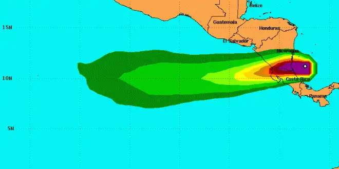 El Instituto Nacional de Meteorología de Costa Rica señala la llegada del huracán a la costa costarricense sobre las 10.00 hora local (16.00 GMT), con todas las reservas, ya que la velocidad de Otto cambia constantemente.