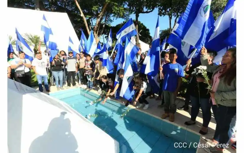 La representación de cada uno de los movimientos de Juventud Sandinista depositó flores en los sitios donde yacen los restos mortales de tres de los grandes símbolos de la Revolución Sandinista cuya causa hoy tiene continuidad en las nuevas generaciones.