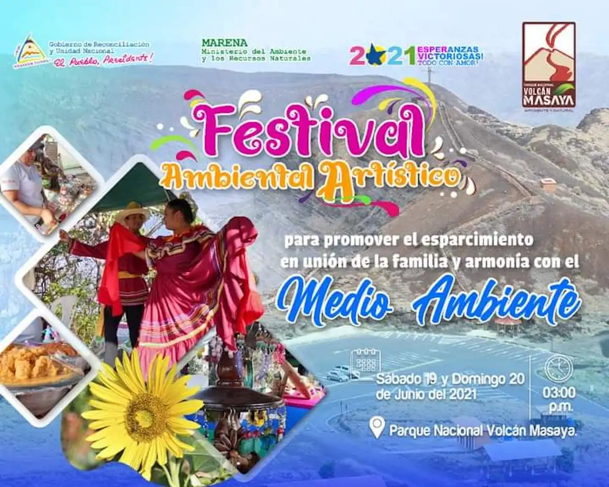 Este sábado 19 y domingo 20 de junio se llevará a cabo el Festival Ambiental Artístico en desde las 3 de la tarde en el Parque Volcán Masaya, anunciaron las autoridades del Ministerio del Ambiente y Recursos Naturales (MARENA).