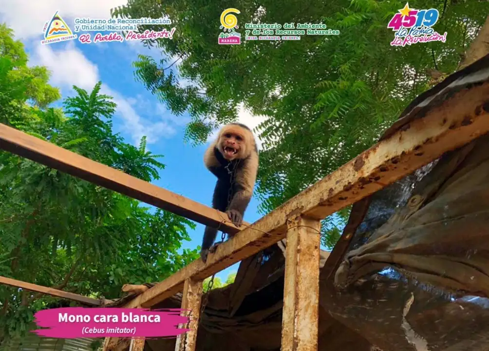 Este jueves, el Ministerio del Ambiente y de los Recursos Naturales (MARENA) en coordinación con la Policía Nacional y Parque Zoológico Nacional, rescataron un mono carablanca de una casa ubicada en el barrio Tomás Borge, del municipio de Nindirí, Masaya.