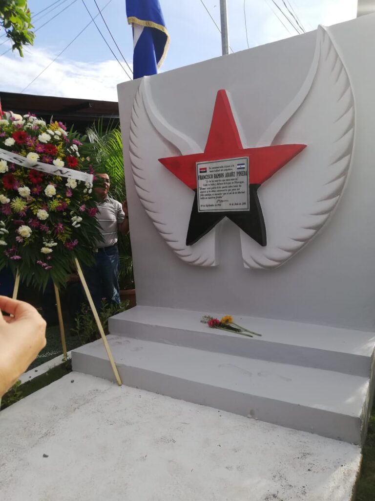 Este domingo, la militancia sandinista develizó un monumento en memoria del compañero Francisco Ramón Arauz Pineda, quien hace un año fue asesinado por grupos terroristas golpistas que se atrincheraron en la UPOLI.