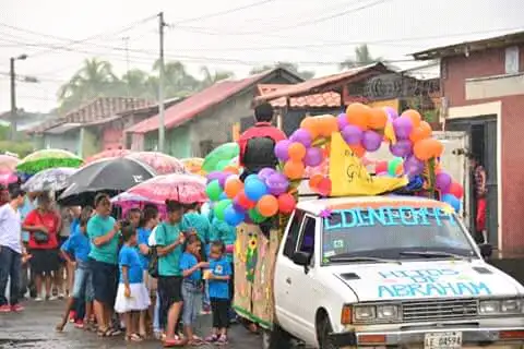 En Managua, centenares de miembros de la Iglesia Bautista Hebrón adornaron carrozas con globos y trabajos manuales representativos de La Biblia y de la paloma que simboliza el Espíritu Santo recorriendo las cercanías de la UPOLI, Multicentro Las Américas, y la Rotonda La Virgen hasta culminar en los semáforos de la Villa Miguel Gutiérrez.