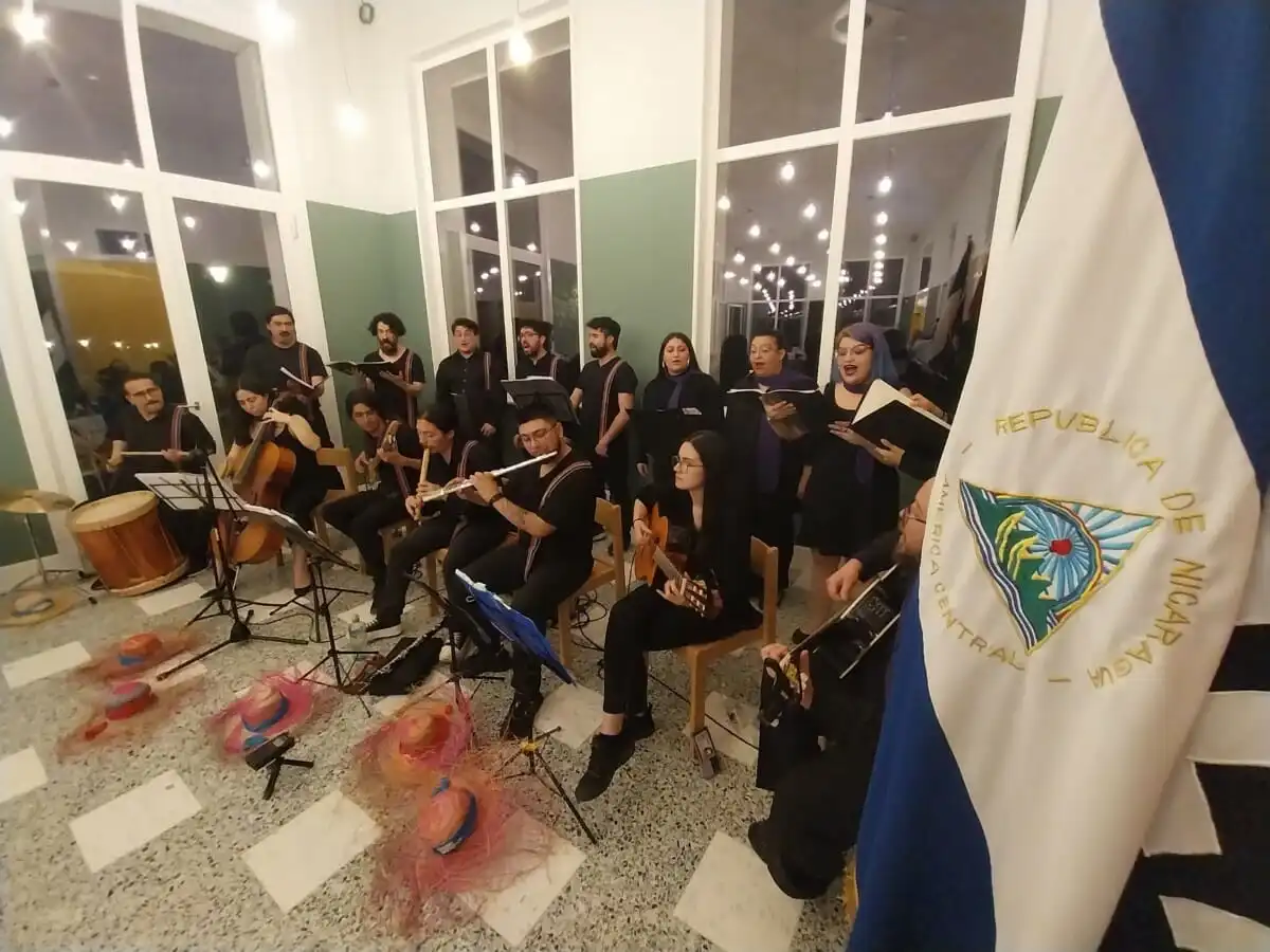 Javier Contreras, Profesor y Co-Director del grupo, expresó el honor que significaba para ellos interpretar estas canciones frente a las banderas nicaragüenses, mostrando su cariño y solidaridad hacia el pueblo nicaragüense y la Lucha Sandinista.