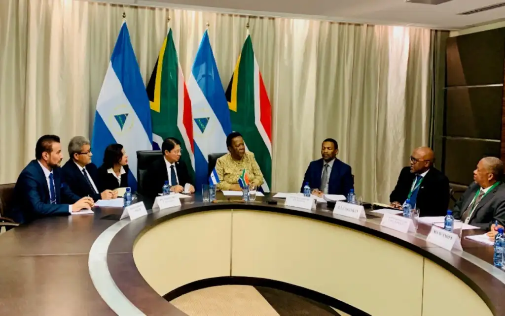 Moncada transmitió los saludos fraternos del Presidente Daniel Ortega, de la Vicepresidente Rosario Murillo y el pueblo de Nicaragua al Presidente de Sudáfrica Cyril Ramaphosa y al pueblo sudafricano.