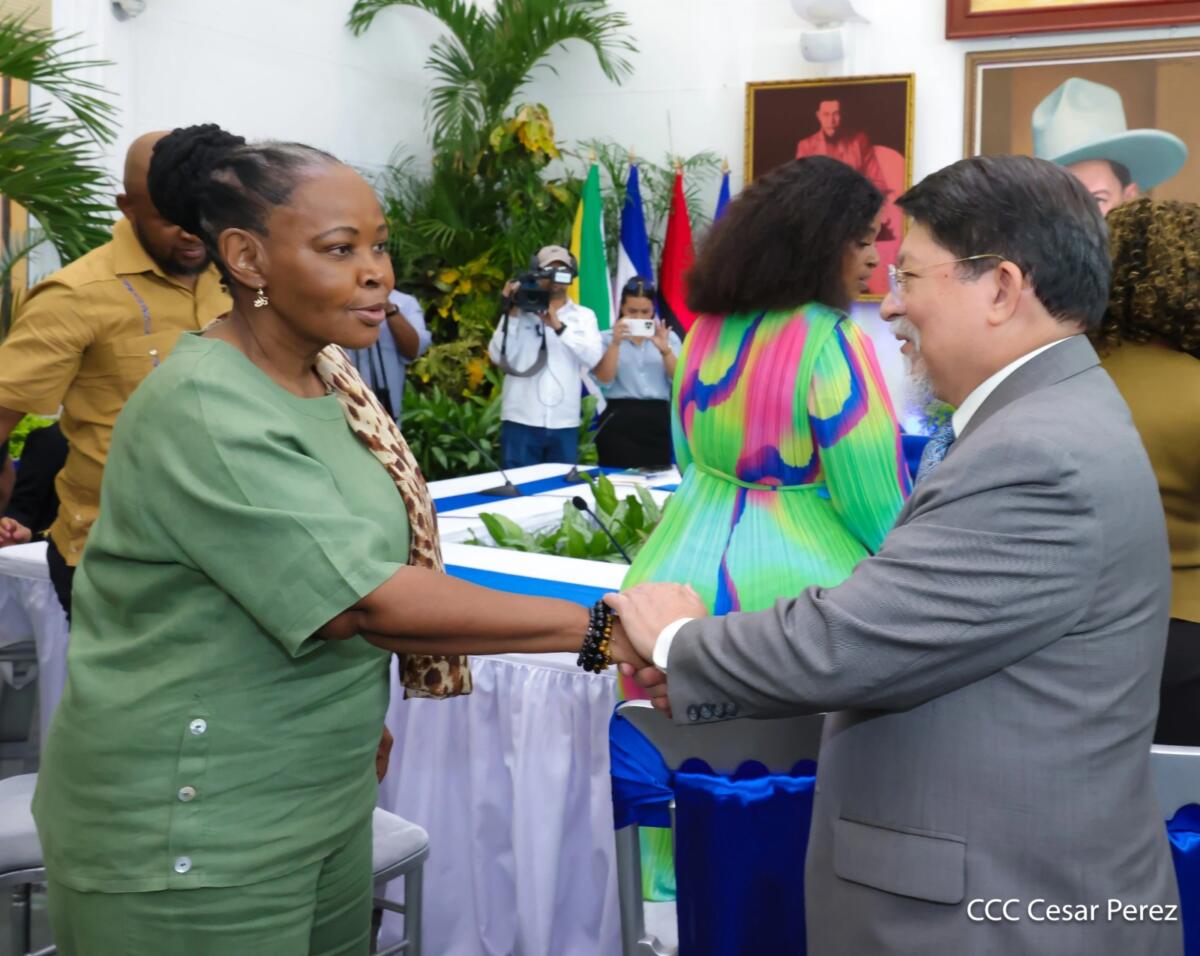 También transmitió el saludo fraterno de los Copresidentes Comandante Daniel Ortega y Compañera Rosario Murillo, reafirmando el compromiso del país con la solidaridad internacional.