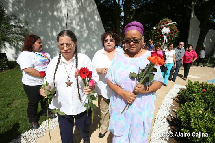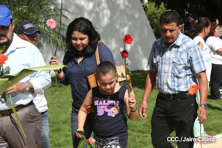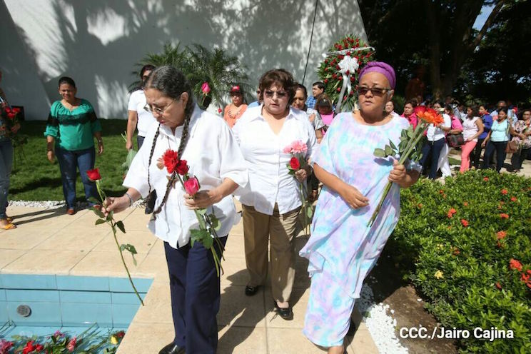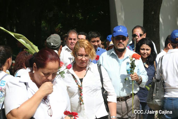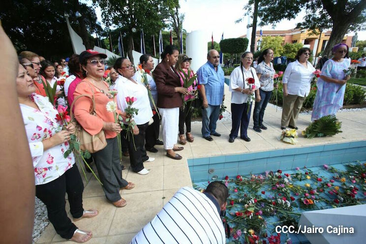 «Venimos acá a este espacio que es para nosotros un templo sagrado, porque rememora toda la lucha histórica de nuestro país, la valentía de nuestro pueblo, la algarabía de la juventud, sobre todo el compromiso y la lealtad a la patria por la defensa de la revolución (…) la Juventud Sandinista de los barrios venimos a depositar una ofrenda floral, a obsequiar flores al mausoleo del Comandante Carlos, precisamente porque parte a la eternidad, pero queda en cada uno de los corazones de los nicaragüenses, en las acciones de los nicaragüenses», declaró Elena García.