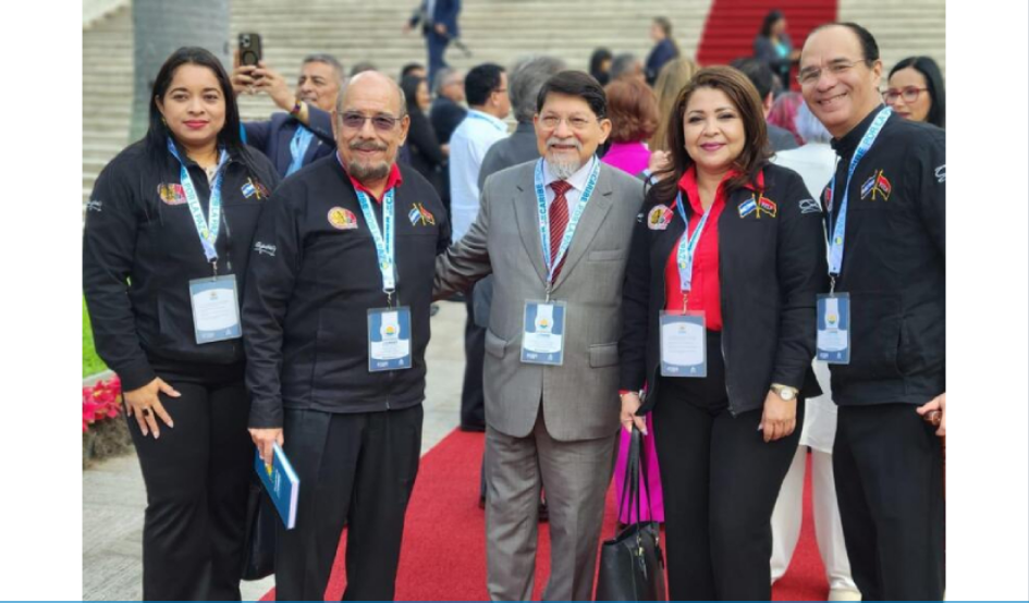 Destacó la participación de la delegación nicaragüense. «Ahí está nuestro canciller Denis, está la compañera Arling Alonso, vicepresidenta primera de la Asamblea Nacional. Está Edwin, jefe de bancada del Frente Sandinista, Carlos Emilio, Yitsy, diputados y está Daysi, nuestra embajadora, junto a su equipo de consejeros Valezka y César Acosta».