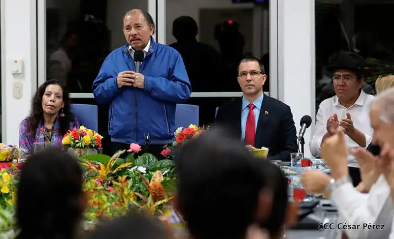 El Presidente Daniel Ortega y la vicepresidente Rosario Murillo se reunieron esta noche con miembros del Consejo Político del ALBA-TPC que participaron en la Octava Reunión Extraordinaria en Managua, para analizar el Golpe de Estado contra el Presidente constitucional Evo Morales de Bolivia, perpetrado el pasado 10 de noviembre.