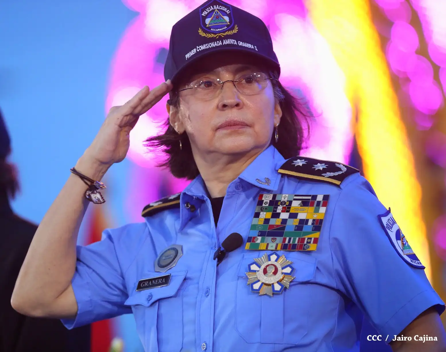 Muchas felicidades a la Primera Comisionada Aminta Elena Granera Sacasa, que ha sido ratificada en su cargo por nuestro Presidente el Comandante Daniel”, dijo la Compañera Rosario Murillo tras leer el acuerdo presidencial.