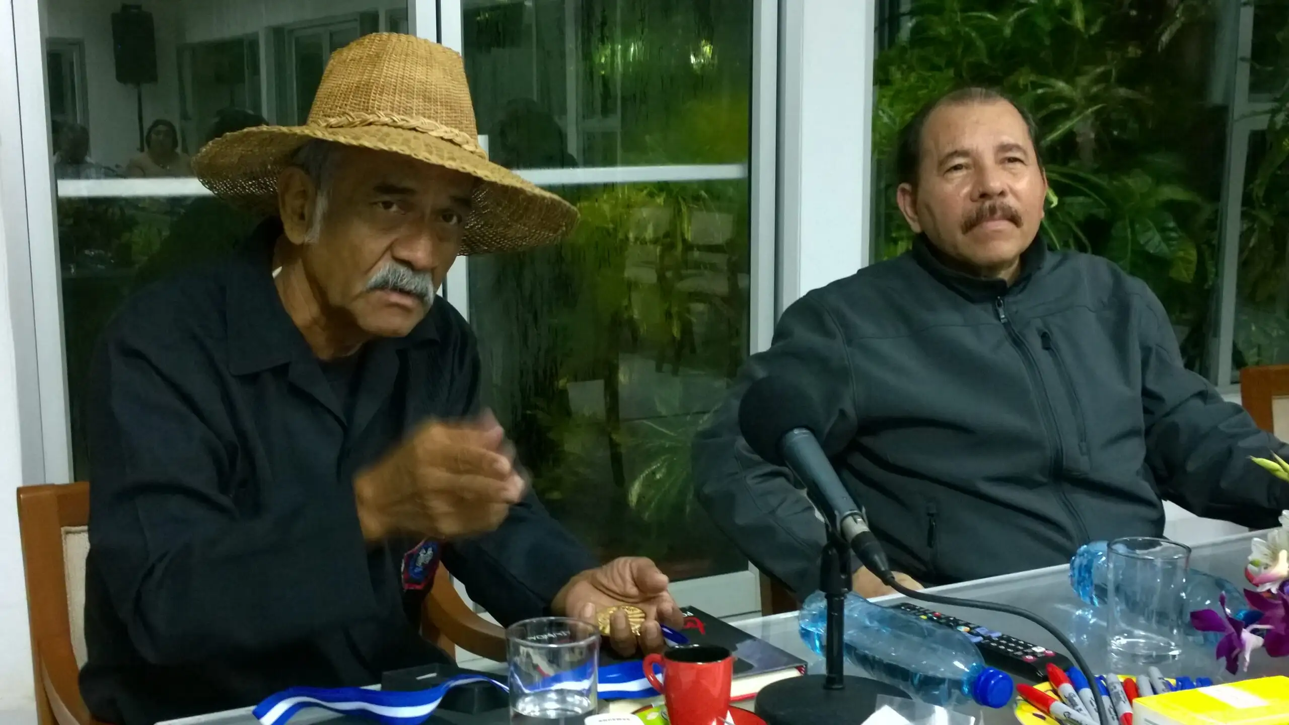 Durante el encuentro, el mandatario entregó al preside de la Asociación de Educación Popular Carlos Fonseca Amador (AEPCFA) un sombrero de palma, característico de este Quijote de la Alfabetización, que se hizo acompañar por miembros de la Asociación, representantes de la solidaridad internacional, jóvenes universitarios que han participado en la alfabetización en comunidades indígenas de la costa caribe nicaragüense norte y sur en los ocho últimos años, familiares del maestro Pineda y colaboradores permanentes de la alfabetización.