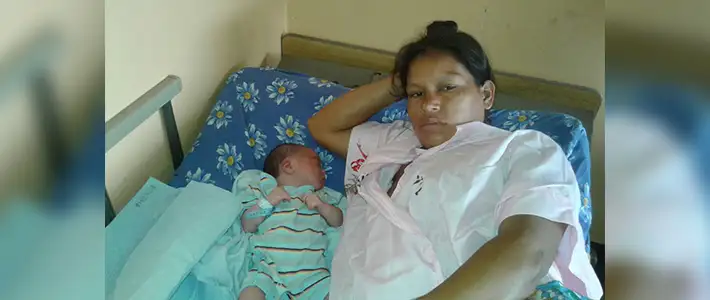 Mayerlin, llegó procedente de la casa materna del municipio de Achuapa, de donde es originaria. La Alcaldía de León y el Ministerio de Salud, le hicieron entrega de un kit de artículos para su bebé.