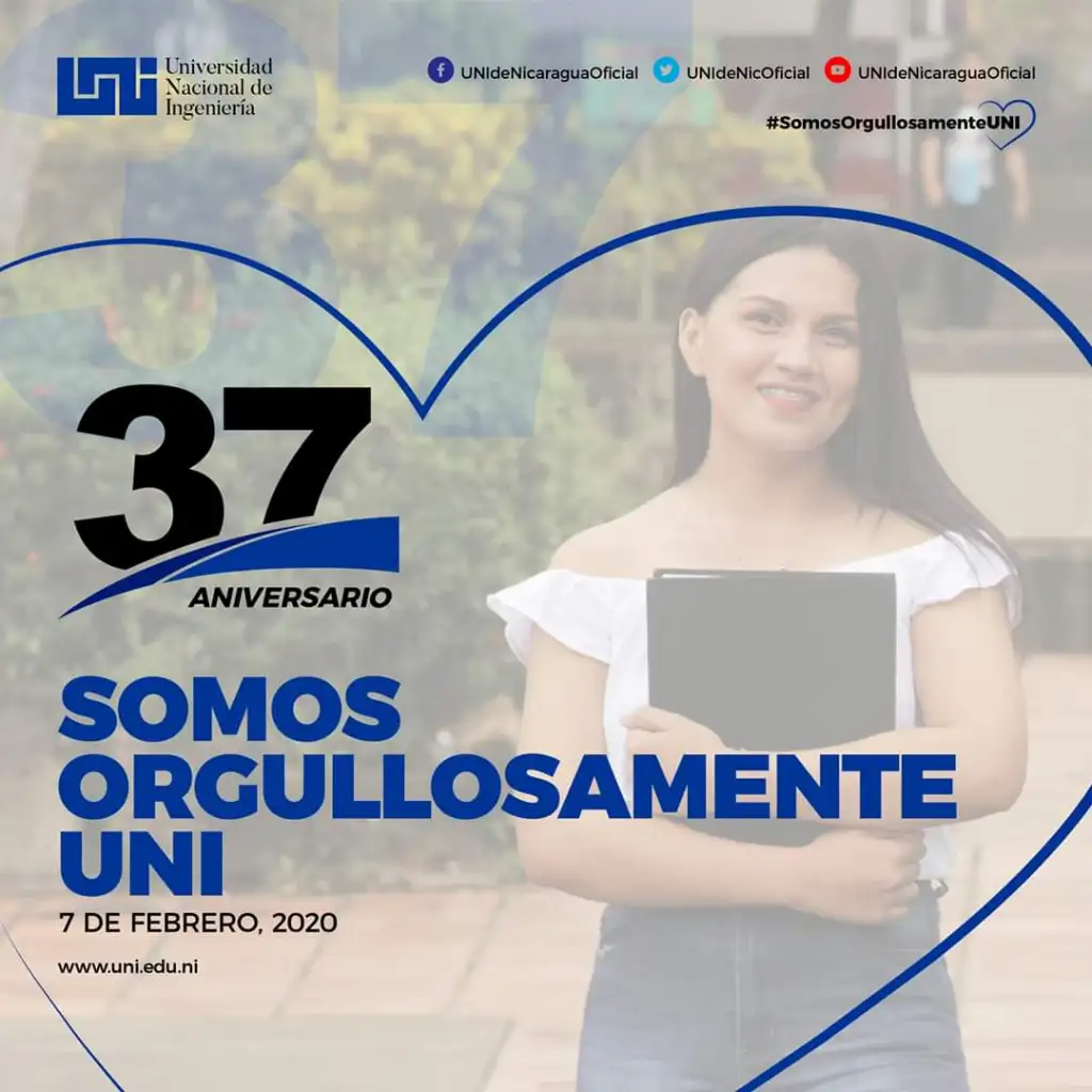 Felicidades a toda la comunidad universitaria que trabaja en la UNI, y por supuesto, especiales reconocimientos a los precursores y fundadores de esta institución, así como infinitos agradecimientos a la población nicaragüense por confiar en el trabajo que desempeñamos desde esta casa de estudios y a los estudiantes por preferir cursar su carrera universitaria en la Universidad Nacional de Ingeniería./ Lic. Vanessa Bordas A.