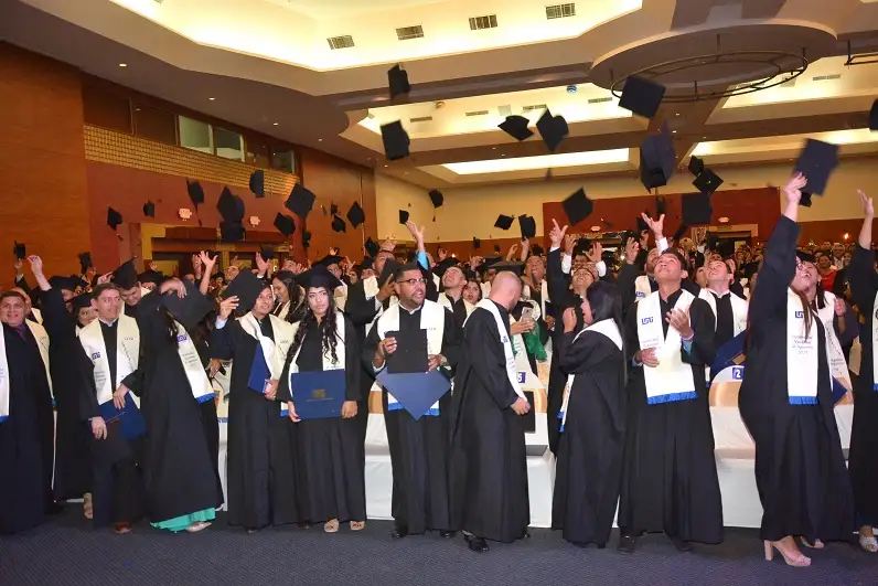 En esta ceremonia recibieron sus títulos los primeros nueve graduados de la carrera de Ingeniería en Economía y Negocio, una carrera impartida por la universidad en alianza con el Banco Central de Nicaragua.