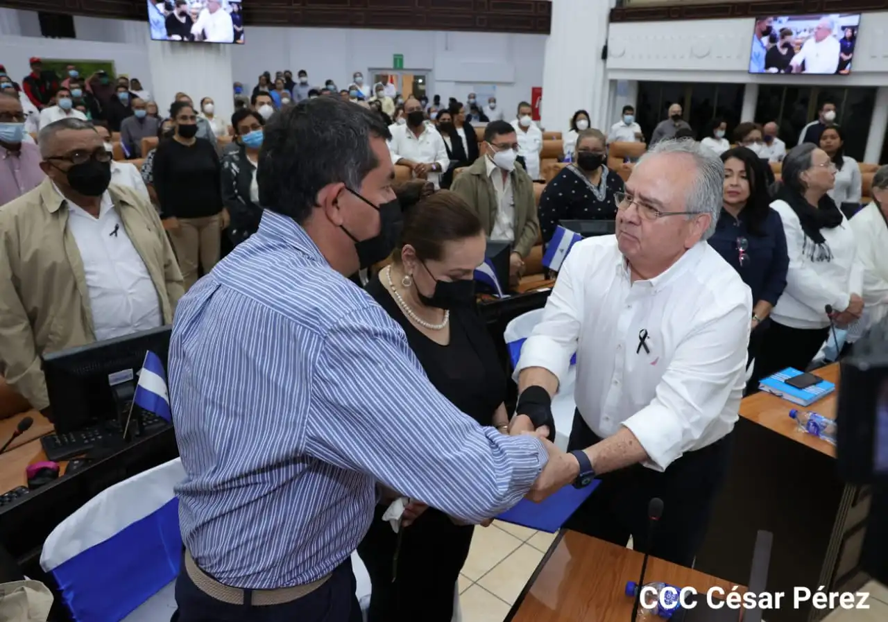 El Presidente de la Asamblea Nacional, Gustavo Porras, manifestó “quiero entregarle a tu esposa Sandra, a tus hijos, nietos, hermanos y hermanas, la bandera de Nicaragua y la bandera de nuestro Glorioso Frente Sandinista de Liberación Nacional, con el compromiso de continuar tu ejemplo, de llegar hasta la eternidad luchando por nuestros ideales y por la construcción de ésta Patria”.