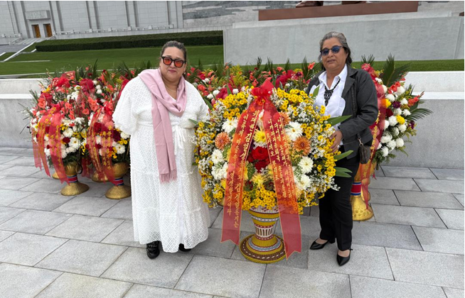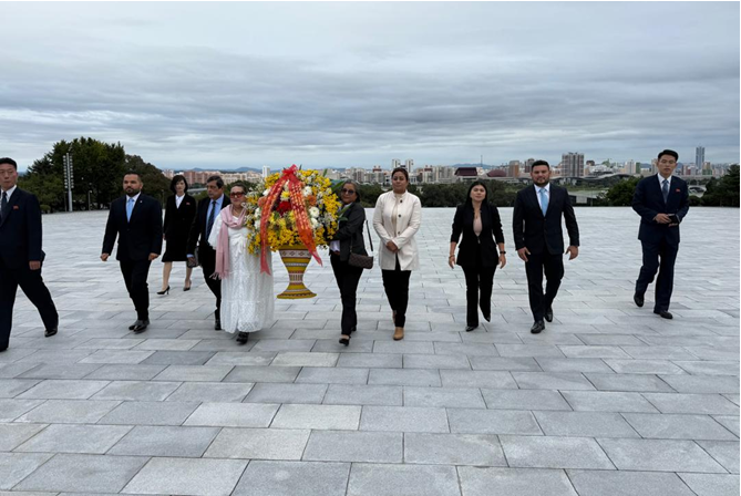 En su primer día de actividades, la delegación nicaragüense presentó una ofrenda floral ante las estatuas de bronce del Gran Líder Camarada Kim Il Sung y el Gran Dirigente Camarada Kim Jong Il.