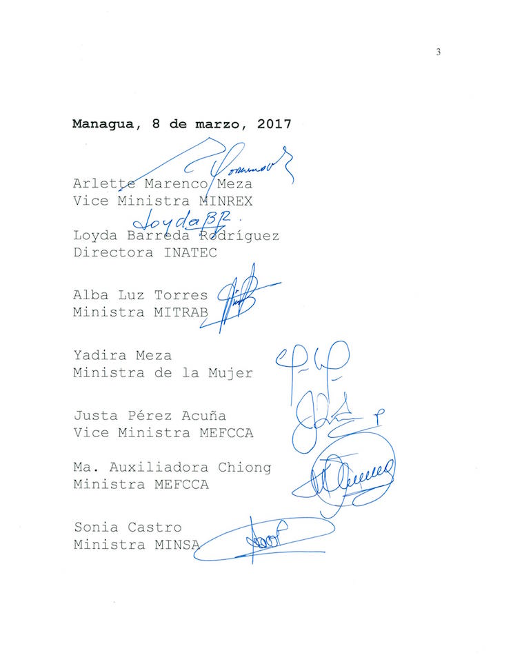 Las Suscritas, Mujeres, Ministras y ViceMinistras del Gobierno de Reconciliación y Unidad Nacional, fuimos convocadas y asistimos de buena fe, a un Evento en Celebración del Día Internacional de la Mujer en la Embajada de los Estados Unidos.