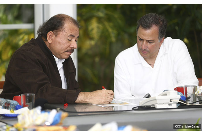 Luego de un encuentro este miércoles en Managua con el canciller mexicano, José Antonio Meade, el Comandante Daniel dijo que dialogaron sobre cómo ahora la naturaleza abrió otros campos en la agenda común, como es el caso de los terremotos y el fenómeno de la sequía.