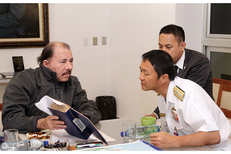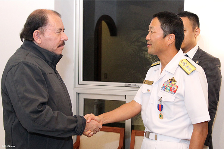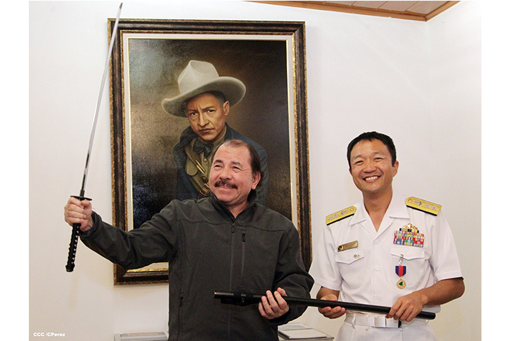 Finalmente, los miembros de la Fuerza Marítima se mostraron satisfechos de haber visitado Nicaragua y de sostener este fraterno encuentro con el mandatario a quien le entregaron reconocimientos, entre ellos una réplica de un sable japonés.