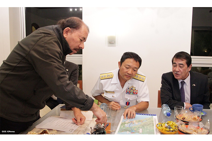 Indicó que el Proyecto del Canal de Nicaragua ha avanzado bastante. Estamos «en la etapa de concluir el estudio de medio ambiente. La empresa que trabaja el estudio de medio ambiente pidió todavía un plazo más y han empezado a trabajar nuevamente en unos estudios aéreos sobre lo que son zonas de aguas», indicó, señalando que en un futuro la Fuerza Naval de Japón podrá cruzar el Canal Interoceánico de Nicaragua.