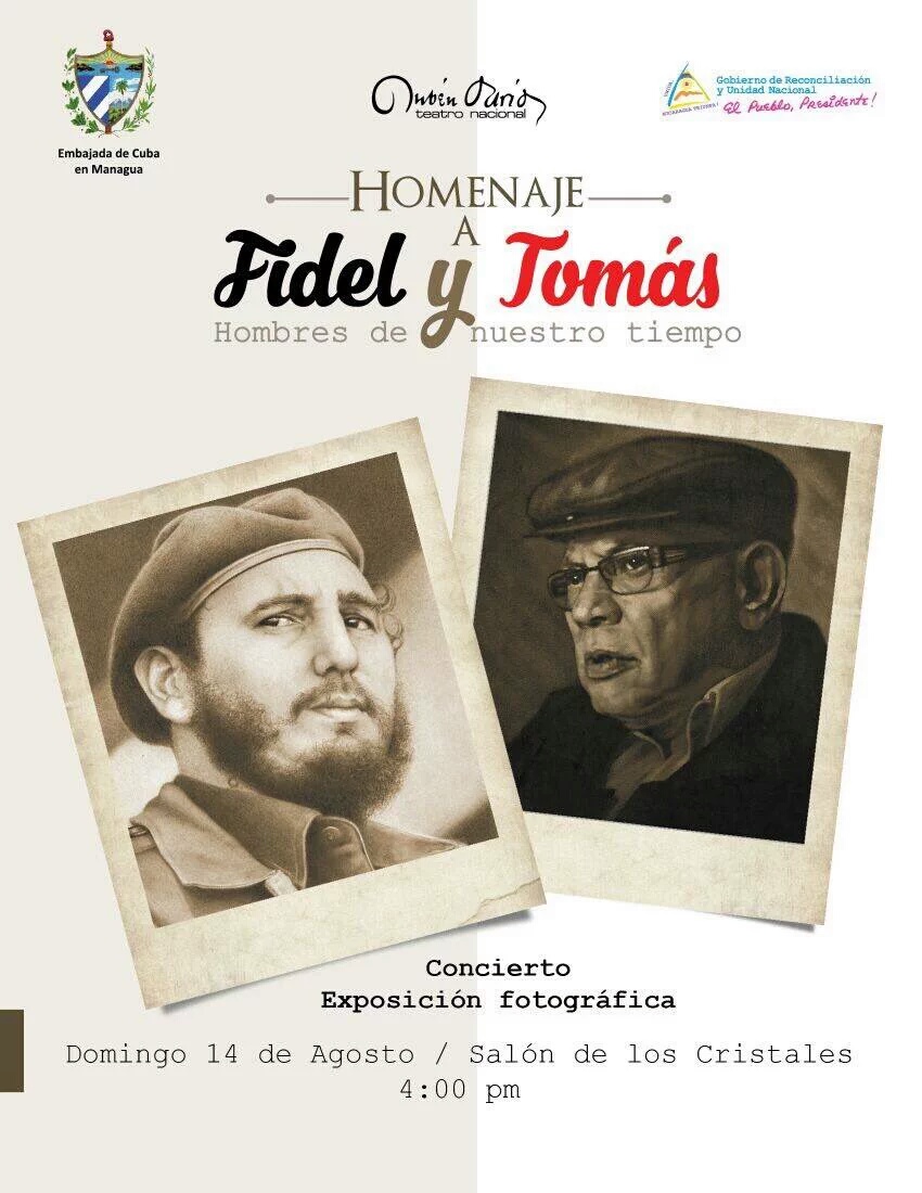 Este domingo en el Salón de los Cristales del Teatro Nacional Rubén Darío, a partir de las 4 de la tarde, se realizará un concierto y una exposición fotográfica, en homenaje a Fidel y Tomás, en saludo al cumpleaños de estos dos grandes hombres de la historia.