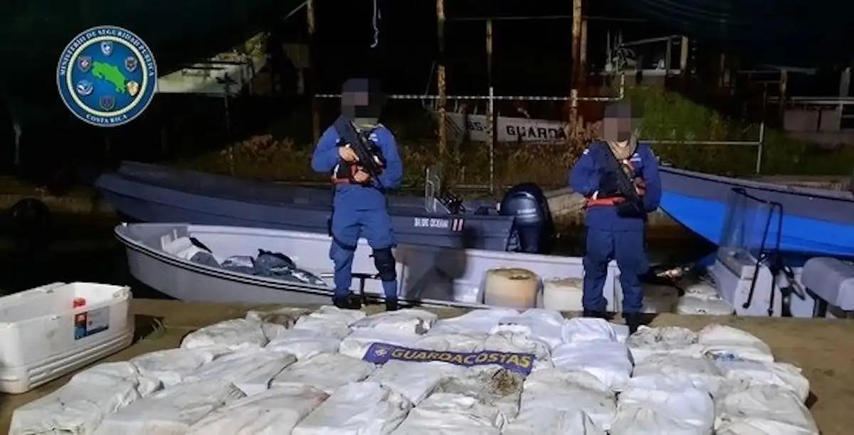 El decomiso lo ejecutaron los policías en un operativo que arrancó la noche del martes y concluyó la madrugada del miércoles en aguas del Caribe costarricense a 20 kilómetros de las costas de Puerto Limón.