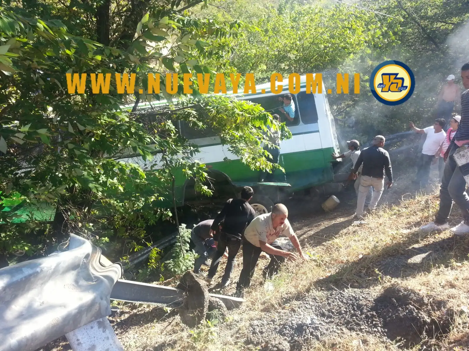El bus salió de Jinotega hacia Managua a eso del mediodía del jueves, y minutos más tarde, se accidentó aparentemente por un desperfecto mecánico y la falta de pericia del conductor, haciendo que la unidad de transporte, se saliera de la vía, y cayera en una hondonada de unos 10 metros de profundidad, indicó el comisionado Omar Martínez, jefe de tránsito en Matagalpa.