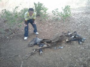 Los huesos pelados y medio saco de carne le dejaron abigeos desconocidos al campesino Julio Cesar Narváez, de 45 años, propietario de un caballo y una yegua que le robaron en el Ticomo, carretera sur.