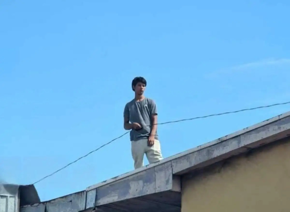 En imágenes captadas en el sitio se observa a David en la parte alta de la casa, aferrado a los cables eléctricos, generando temor debido al alto riesgo de que se electrocutara, al hacer contacto con una parte pelada del cable.