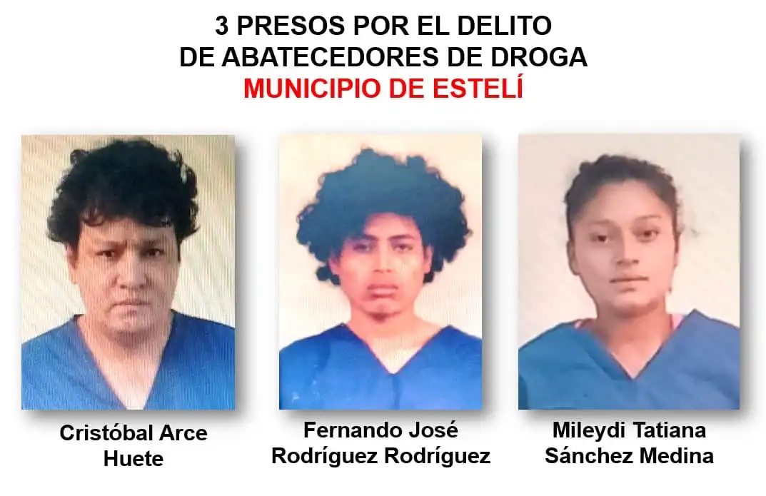 Los detenidos por abastecimiento de drogas son Cristóbal Arce Huete, Fernando José Rodríguez Rodríguez, Mileydi Tatiana Sánchez Medina, Jesús Alberto Rojas Huembes, Julio César Argueta Rivera, Marlon Josué Aráuz Castro y William Alexander Aráuz Castro.