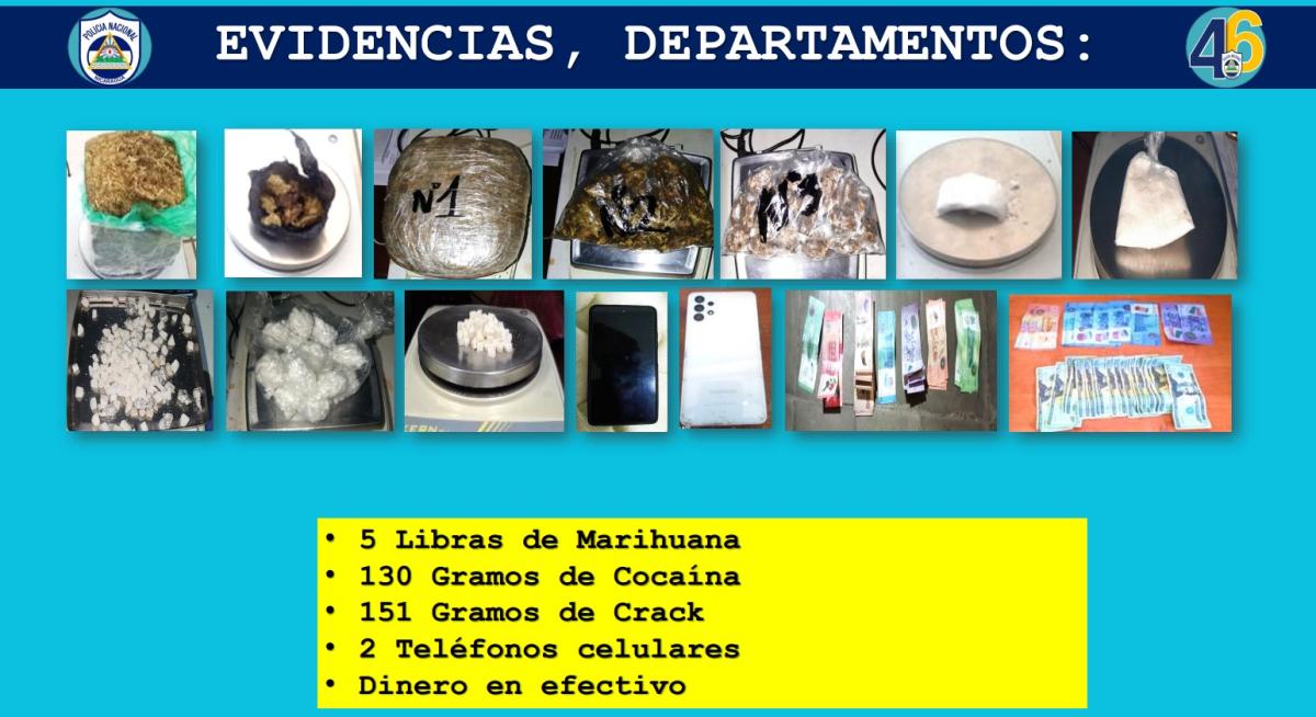 De igual manera, 1 sujeto fue capturado por abastecer de drogas en Managua , 9 en Masaya, León y Jinotega, y 2 por tráfico de drogas en Estelí.
