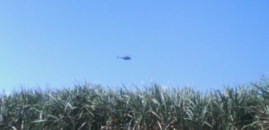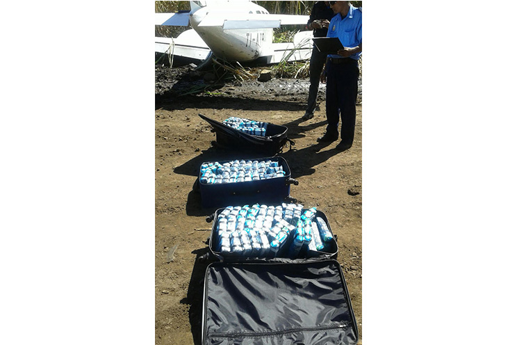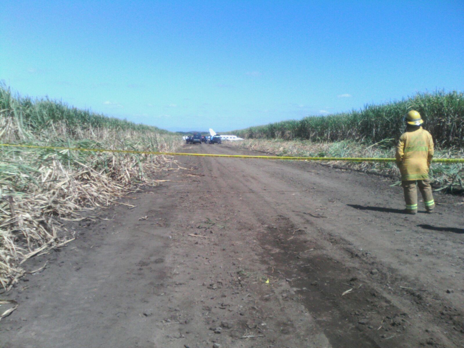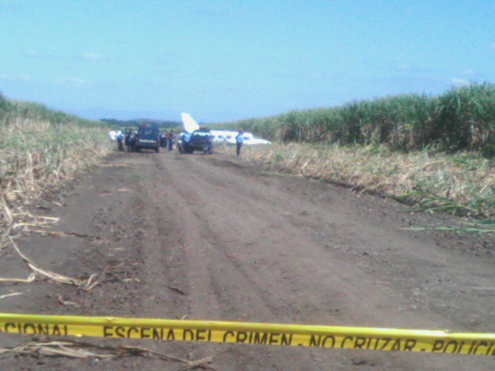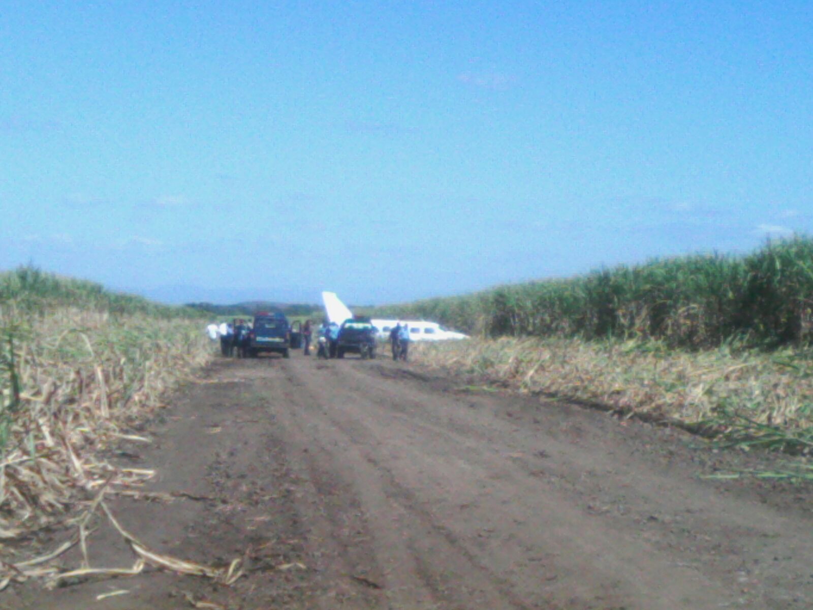 Aparentemente, la aeronave realizó un aterrizaje planificado en una trocha ubicada en los cañaverales de la finca a eso de las ocho de la mañana y poco después aparecieron dos camionetas, una negra y otra azul, en las que se llevaron varias maletas de drogas.