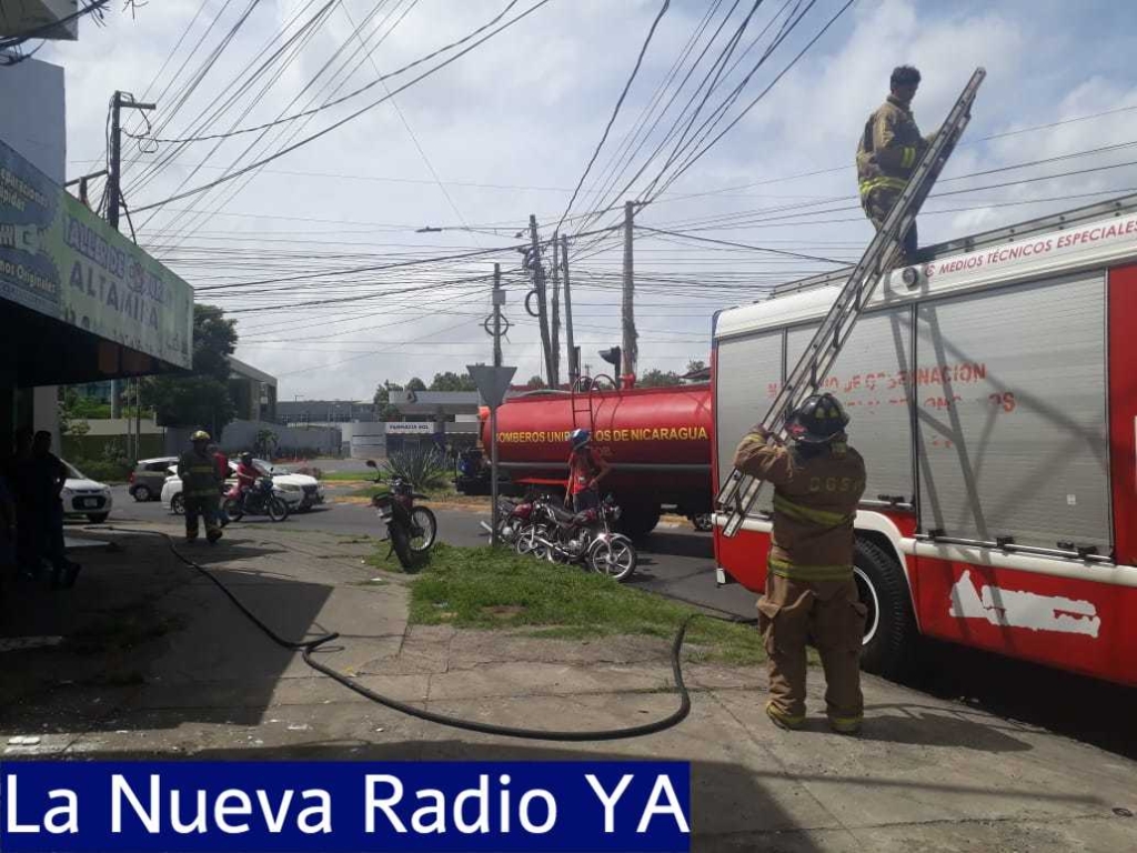 Miembros de los Bomberos Unificados extinguieron este martes un incendio originado por un cortocircuito en un negocio ubicado cerca de los semáforos de Loselza, en residencial Altamira, en Managua.