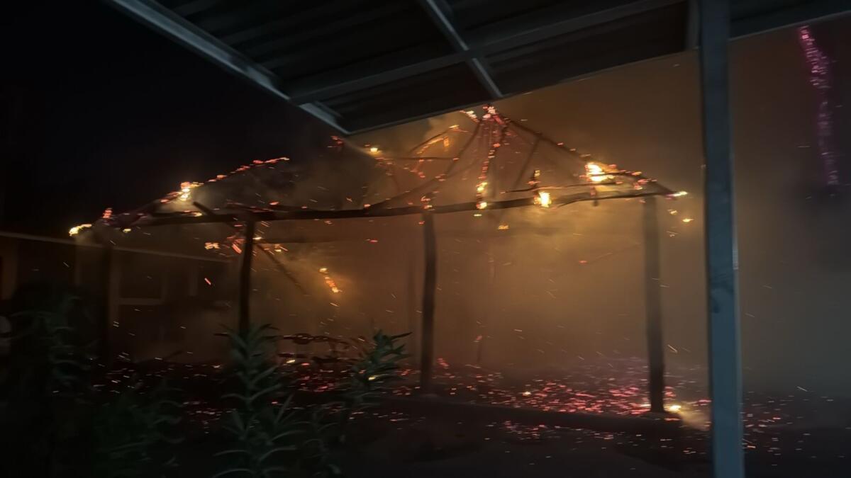 Aparentemente, un cortocircuito se generó en una choza de paja donde los alumnos del colegio ocupan a la hora de merendar.