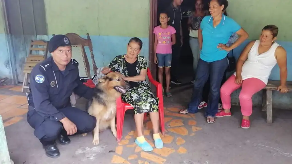 Un perro especialista en búsqueda y rescate de la Policía Nacional logro localizar a la señora Antonia Rodriguez Téllez, de más de 65 años de edad, después de muchas horas de haberse extraviado en la comunidad de Aguas Calientes, en el municipio de Somoto, Madriz.