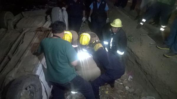 El vehículo volcado fue sacado del cauce por una grúa y llevado al parqueo de la estación del distrito 7 de policía.