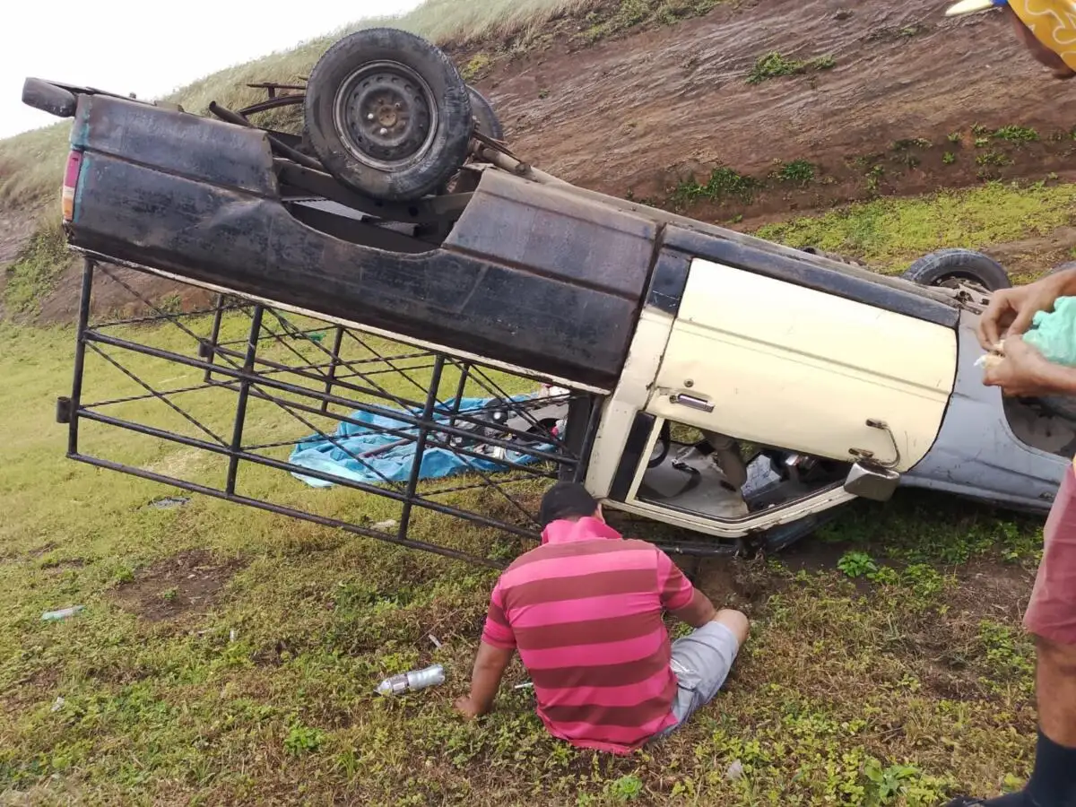 Milagrosamente, Kener José López, de 45 años, resultó solo con golpes leves tras sufrir un aparatoso accidente de tránsito en el kilómetro 30 de la carretera Panamericana Sur, en el tramo entre El Crucero y Diriamba.