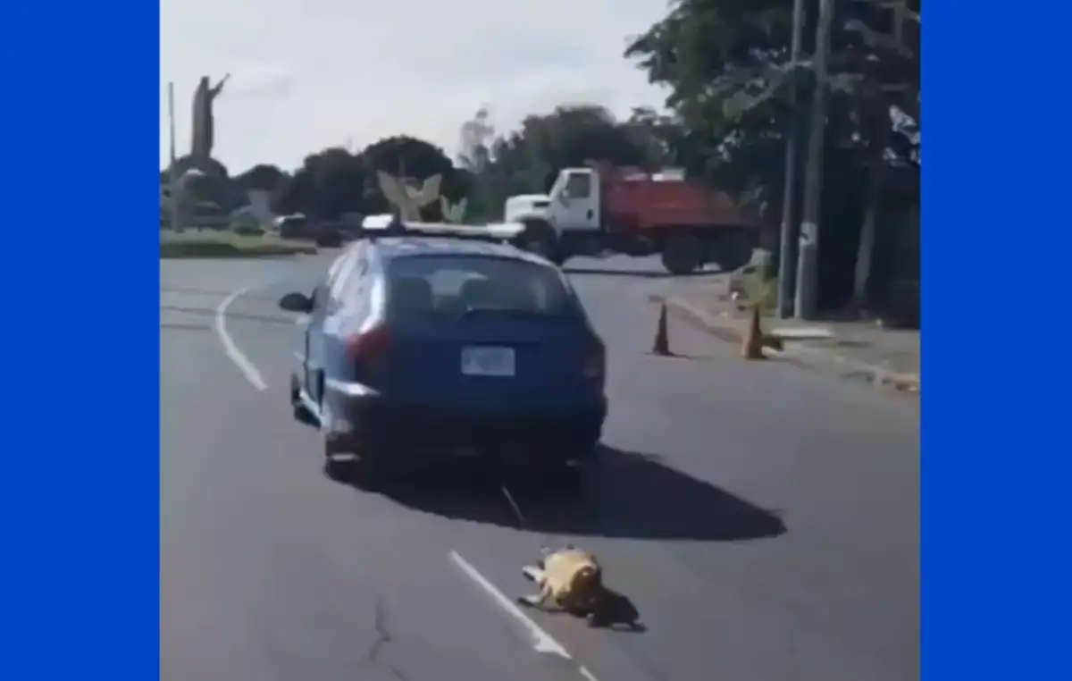Mucha indignación ha causado en las redes sociales el caso de un perrito que fue arrastrado con un mecate amarrado a la parte trasera de un carro estilo station wagon por espacio de varias cuadras en el sector de la rotonda Cristo Rey en Managua, la tarde de este viernes.