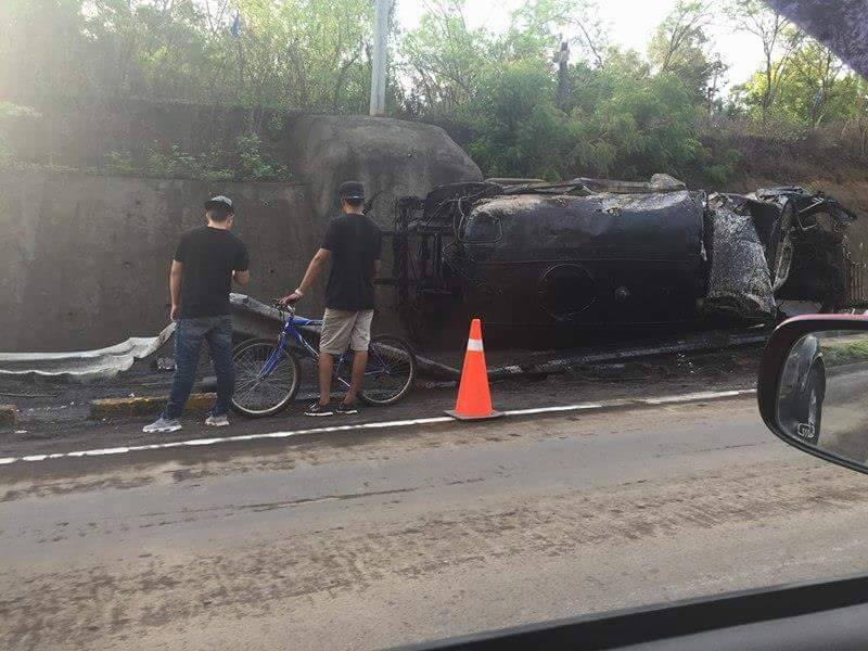 Con golpes y escoriaciones resultó Lester Reyes Camacho, de 44 años conductor del camión cisterna Internacional color blanco placa M079-141, el que remolcaba una pipa con mil 500 galones de Bunker con material asfaltico.