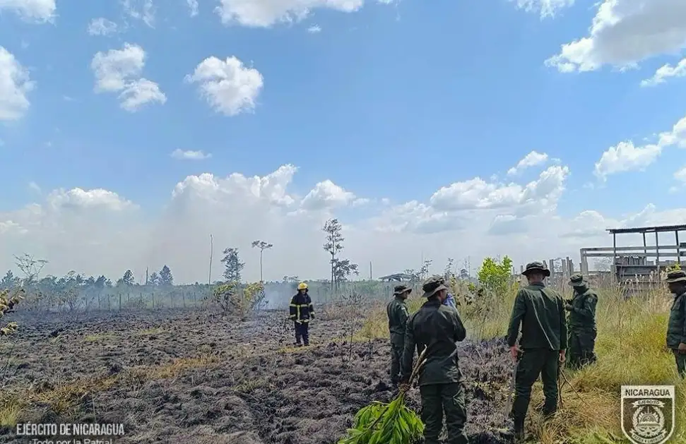 El Ejército de Nicaragua, el 22 de marzo de 2025, a través del Batallón Ecológico “BOSAWAS”, participó en sofocación de incendio agropecuario en el barrio los Pinos, comunidad de Alamikamba, municipio de Prinzapolka, Caribe Norte.