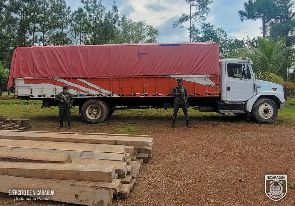El Ejército de Nicaragua, a través del Batallón Ecológico “BOSAWAS”, incautó un cargamento ilegal de madera en el municipio de Alamikangban, en la Costa Caribe Norte.