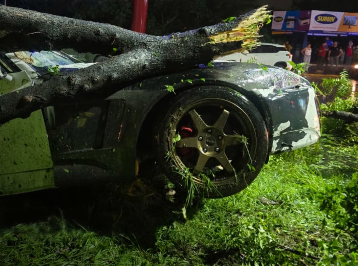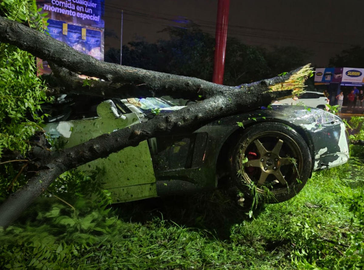 Abdalah manejaba a exceso de velocidad su carro deportivo marca Honda, modelo S2000, color blanco con negro, placas M 441 405, y al intentar esquivar a un motorizado, terminó estrellándose en el boulevard, donde arrancó un árbol de nim.