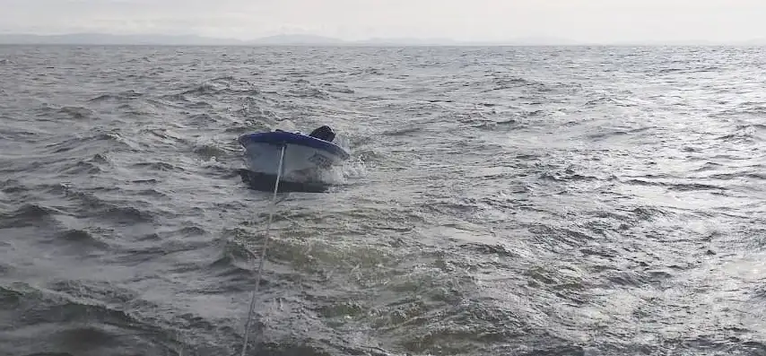 El fuerte viento en la zona hizo que la panga bautizada con el nombre “Mireyda” se volcará, cayendo los 3 hombres al agua.