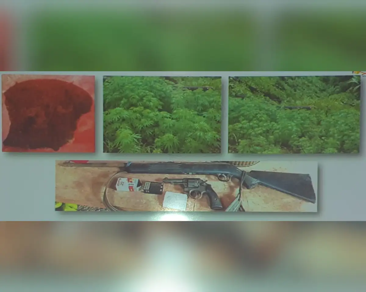 Durante el operativo también se incautó 7 libras de marihuana a granel, 10 libras de semillas de marihuana lista para la siembra, un fusil calibre 22 y un revólver calibre 38 con la serie borrada.