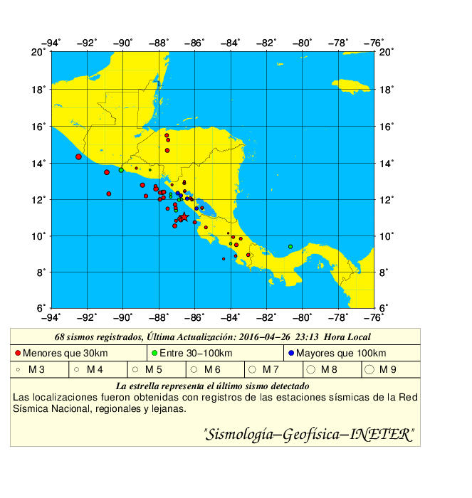 En el sitio web del INETER, también registran otros tres movimientos telúricos, dos de ellos ocurrido en el Océano Pacífico nicaragüense con magnitudes de 3.7 y 4.1, a las 1:47 de la tarde y a las 8:28 de la noche, respectivamente.