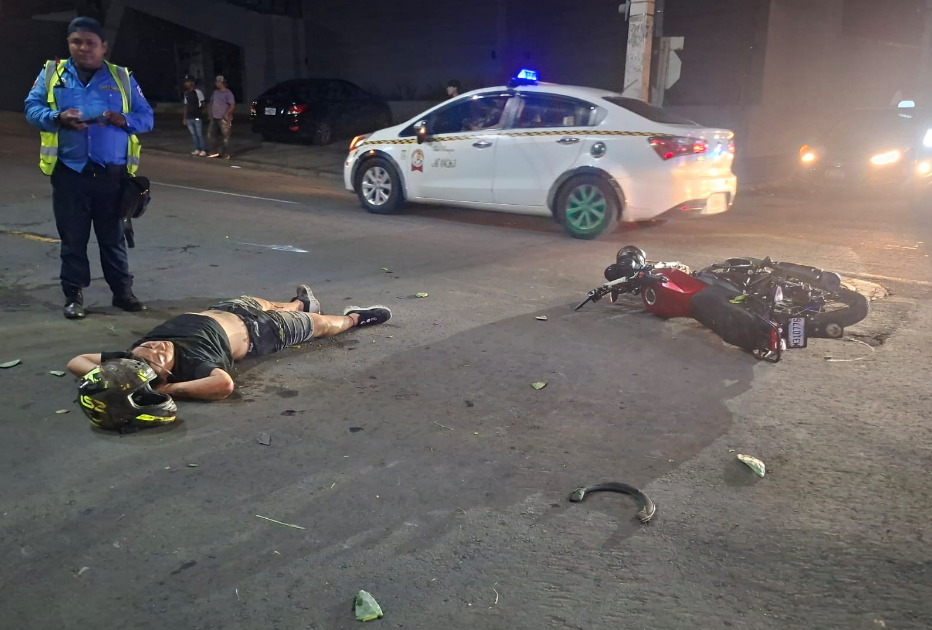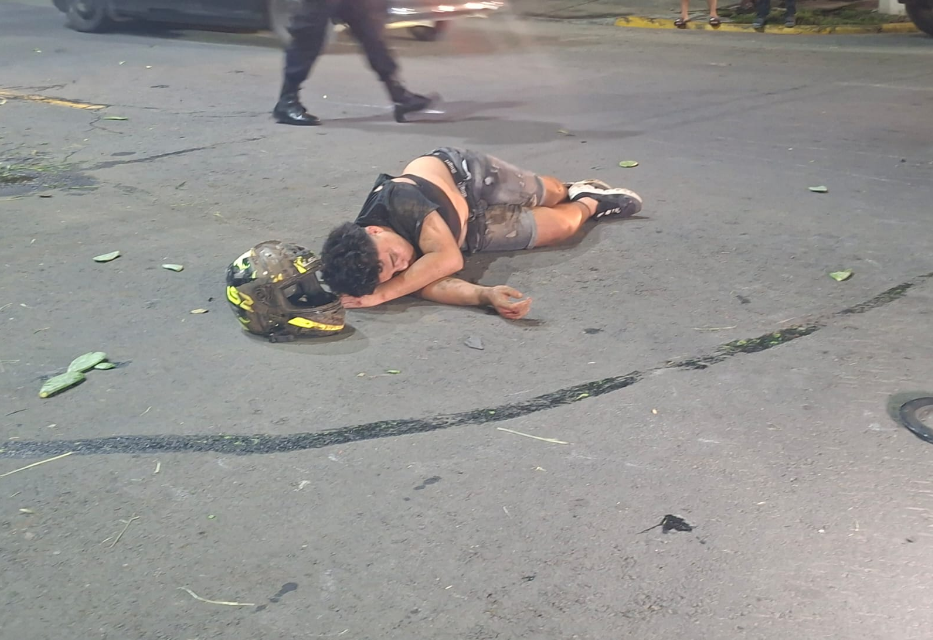 Con tremenda suerte corrió el motociclista Jean Real Hurtado, de 18 años, al perder el control de su vehículo de dos ruedas placas M 310-776 la madrugada de este sábado y resultar con golpes leves, en las inmediaciones de la rotonda de Plaza Inter una cuadra al sur.
